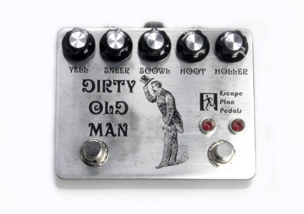 The Dirty Old Man 2 is a dual JFET op amp based overdrive circuit with a very versatile two control tone section and two gain channels. The Dirty Old Man 1 was a great pedal, but we wanted to create a drive circuit that would be easier to control in the mild breakup section, more amp like in the higher gain areas, and with less dramatic clipping, so the need for gain recovery (which adds more noise to the signal) was reduced. The Dirty Old Man 2 was the result of that mission. The Hoot channel is for clean to mild break up sounds. The Holler channel is for higher gain distortion sounds. Dial in the Hoot control for your rhythm riffs, then kick into Holler for screaming leads. The secondary footswitch functions just like channels on an amp, allowing you to switch back and forth on the fly.