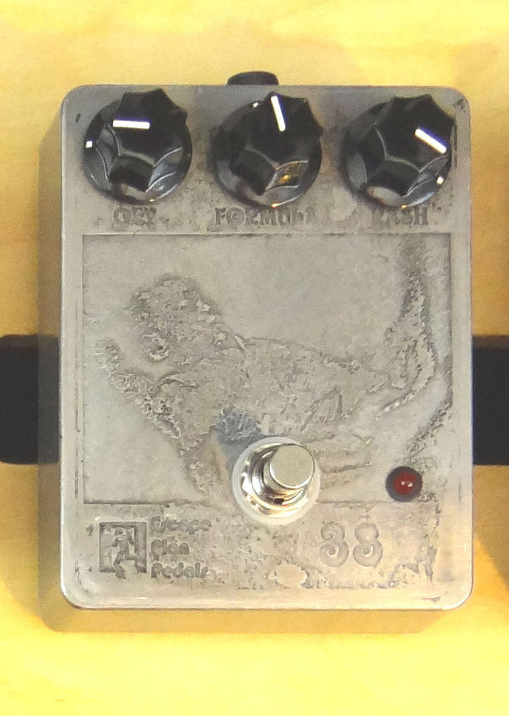 For commercial etching orders, you decide if you want to design the artwork or if you want to collaborate with us and have us create the design. The price includes 8 1590BB size enclosures that are etched, painted with high temp engine enamel, oven cured, drilled, clear coated with automotive acrylic lacquer, and the clear coat is oven cured. We can also do raw etches (like the Butch pedal) if you like, they look cool, too. We typically avoid doing colors since some colors don't react as well with the clear coat, so if you want a color, let us know, and we'll see what we can do.